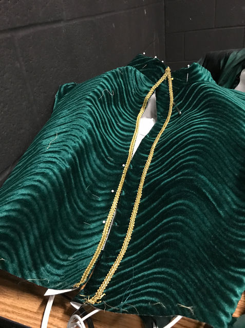 These costumes were created for Leeward and Windward. They are made with a heavy patterned velvet and lined with forest green dupioni silk.